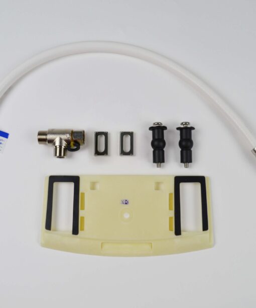 • In de doos: De douche wc, 0,5 m gepantserde slang, 3/8″ T-stuk, montagekit en een handleiding