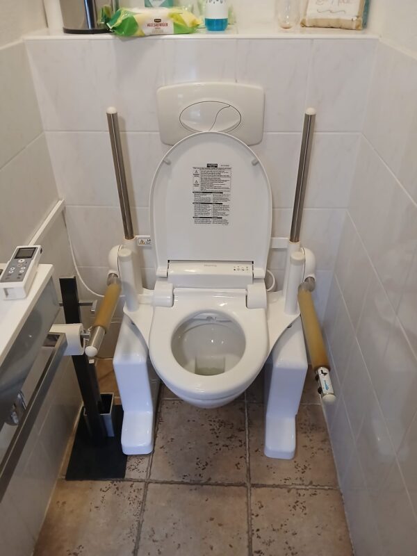 De bewoner kan door deze aanpassingen weer volledig zelfstandig gebruik maken van het toilet. Er is een Blooming 1060 spoelföhn installatie geplaatst in combinatie met een Aerolet verticale toiletlift.
