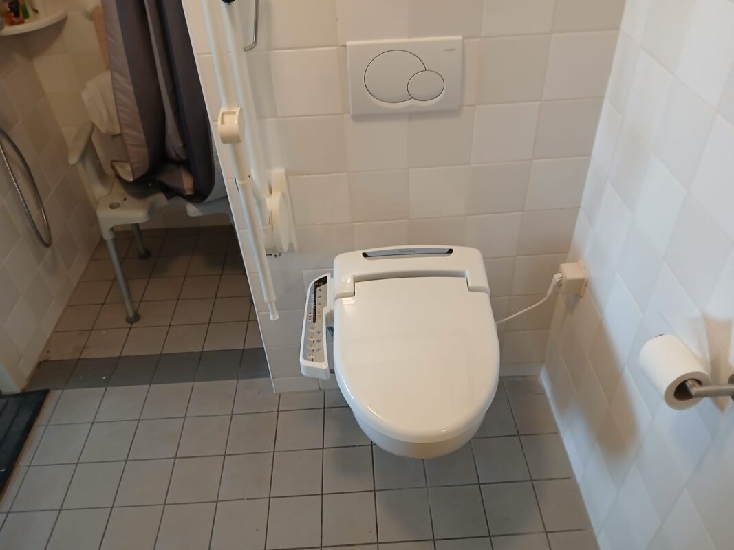 - Een robuuste douchewc met een föhn en zij-bediening